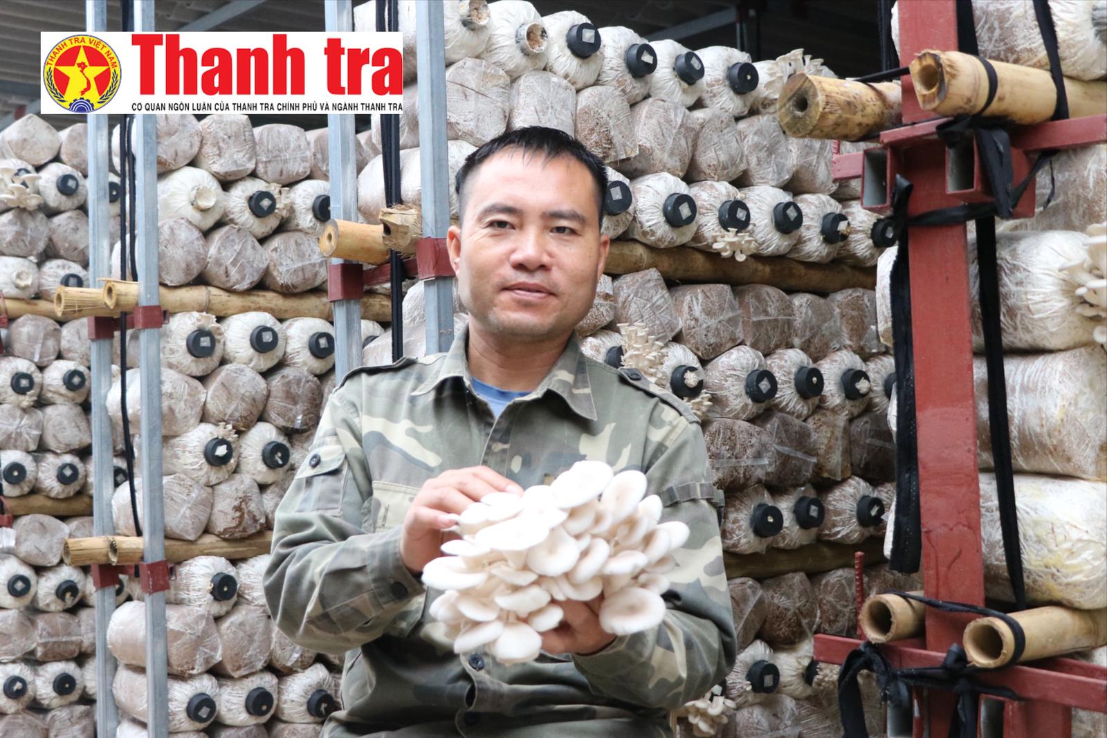 Câu chuyện khởi nghiệp trồng nấm sạch của anh Doanh được Hội Nông dân tỉnh Thái Bình (cũ) tặng bằng khen, lấy làm mô hình mẫu trong chương trình “Nông dân thi đua sản xuất, kinh doanh giỏi”. Ảnh: Đông Hà