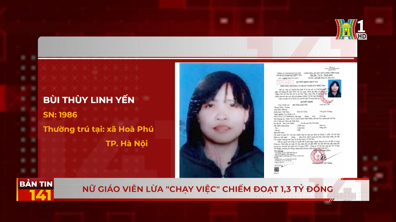Bùi Thùy Linh Yến, 39 tuổi (trú tại xã Văn Võ, huyện Chương Mỹ cũ, nay là thôn Hợp Nhất, xã Hòa Phú, TP Hà Nội), bị Cơ quan Cảnh sát điều tra phát lệnh truy nã toàn quốc về hành vi ‘Lừa đảo chiếm đoạt tài sản’.
