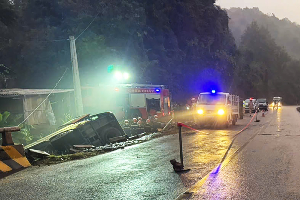 Thời điểm xảy ra tai nạn, ô tô khách loại 36 chỗ mang biển kiểm soát 26F-008.XX do anh Nguyễn Văn H. (SN 1983, trú tại Sơn La) điều khiển, lưu thông theo hướng Hà Nội – Sơn La, đã tự lao xuống cống thoát nước bên phải đường. Trên xe có 18 người (gồm 14 hành khách, 2 lái xe và 2 phụ xe).
