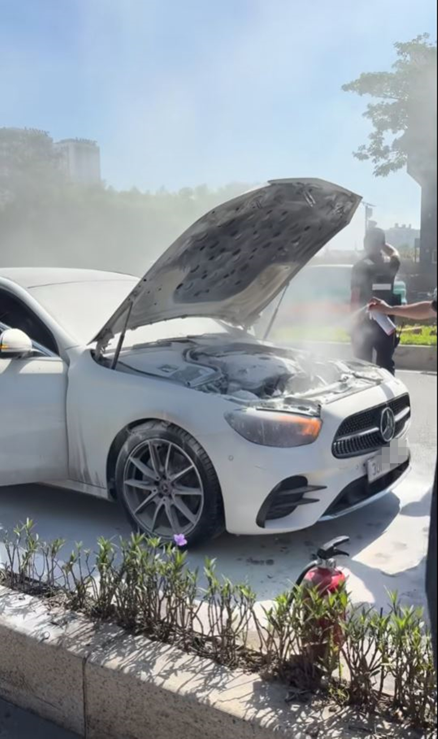 Theo anh A., thời điểm xảy ra sự việc, nữ tài xế điều khiển ô tô Mercedes phát hiện phía nắp capo xe bốc khói trắng, sau đó lửa bùng phát nên đã vội vàng dừng phương tiện.