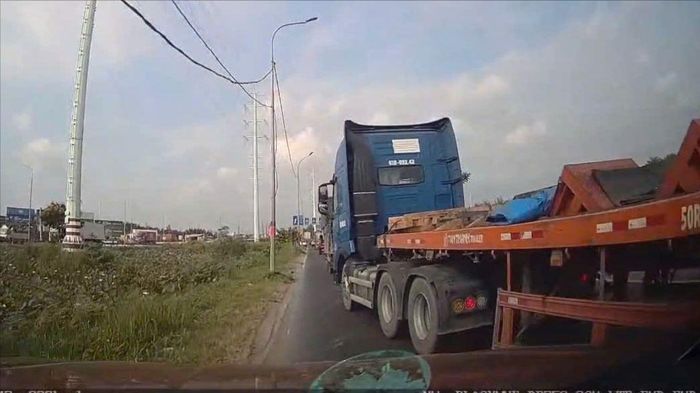Chiếc ô tô biển kiểm soát 22A-240.09 đi vào làn ngược chiều, song tài xế không nhường đường mà chặn đầu xe đi đúng, buông lời thách thức