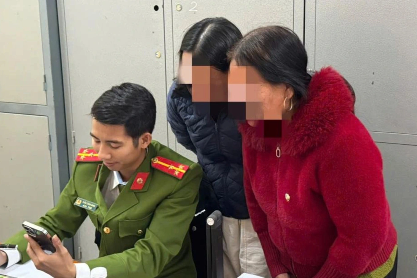 Trần Thị Huỳnh Như (trái) và Danh Lợi tại cơ quan công an. Ảnh: Công an Hậu Giang Trước đó, trình báo tại Công an Hậu Giang, một