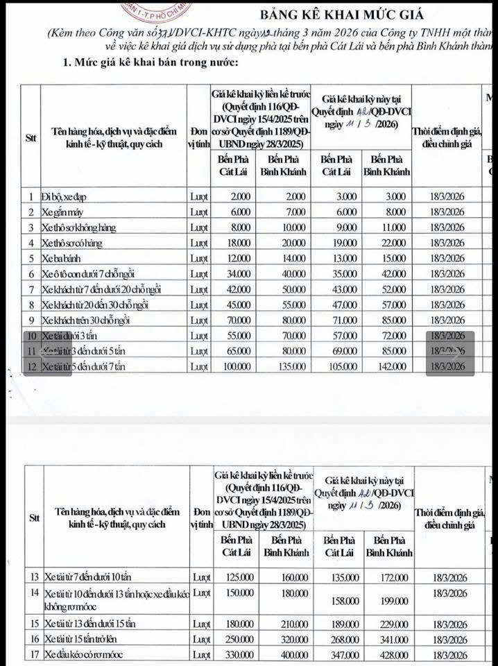 Trước áp lực giá dầu tăng mạnh, đơn vị vận hành hai bến phà Cát Lái và Bình Khánh bắt đầu áp dụng mức giá vé mới từ ngày 18/3.