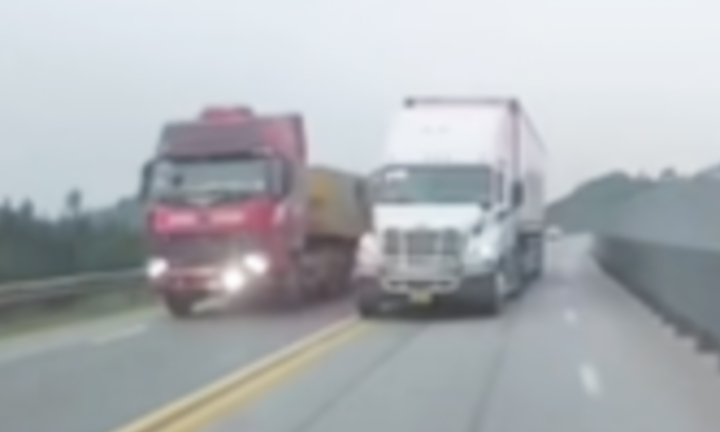 Tài xế xe đầu kéo có hành vi điều khiển phương tiện đi sang làn đường ngược chiều trên tuyến Cao tốc Nội Bài – Lào Cai. (Ảnh: Chụp màn hình)