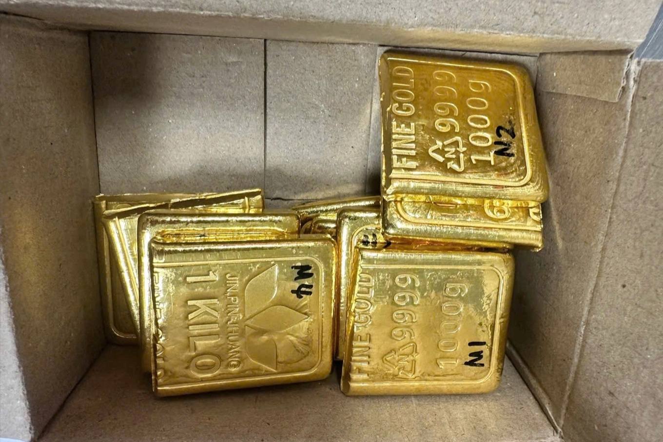 Tổng trọng lượng tang vật thu giữ khoảng 12,3kg kim loại màu vàng, nghi là vàng miếng.