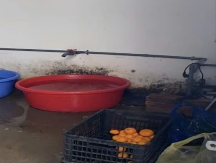 Khu vực chế biến thức ăn cho các học sinh không đảm bảo vệ sinh. Ảnh: Công an Hà Nội