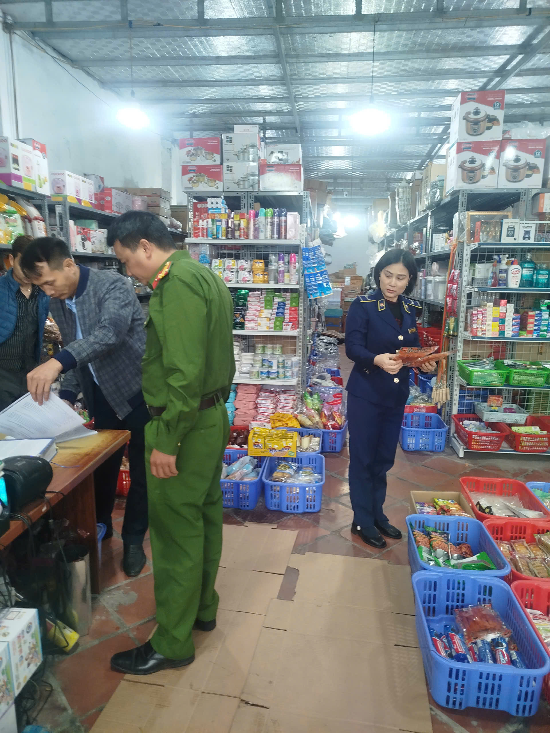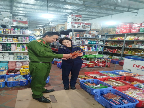 Ngày 03/11/2025, Đội QLTT số 12 đã phối hợp với Công an phường Đồng Văn kiểm tra đột xuất hộ kinh doanh H.K.D.H.T.L do bà H.T.L làm đại diện thuộc phường Đồng Văn, tỉnh Ninh Bình. Qua kiểm tra, phát hiện hộ kinh doanh đang bày bán nhiều thực phẩm như: Cơm cháy, Bỏng gạo, Quẩy, kẹo dẻo,… là hàng hoá không rõ nguồn gốc, xuất xứ và không đảm bảo an toàn vệ sinh thực phẩm.