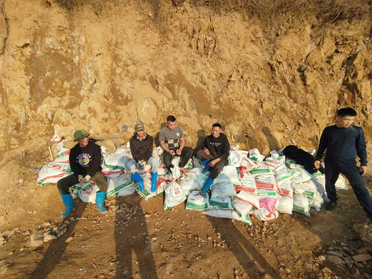 Tại hiện trường, lực lượng chức năng xác định các đối tượng hoạt động theo hình thức khép kín, phân công nhiệm vụ cụ thể nhằm tránh sự phát hiện của cơ quan chức năng. Trên khu vực đỉnh đồi Cai Trong, Công an xã phát hiện 4 đối tượng trực tiếp đào bới, xúc đất đá, thu gom quặng khoáng sản để vận chuyển xuống khu vực chân đồi. Các đối tượng sử dụng công cụ thủ công kết hợp với một số phương tiện, thiết bị phục vụ việc khai thác, làm biến dạng địa hình khu vực đồi.
