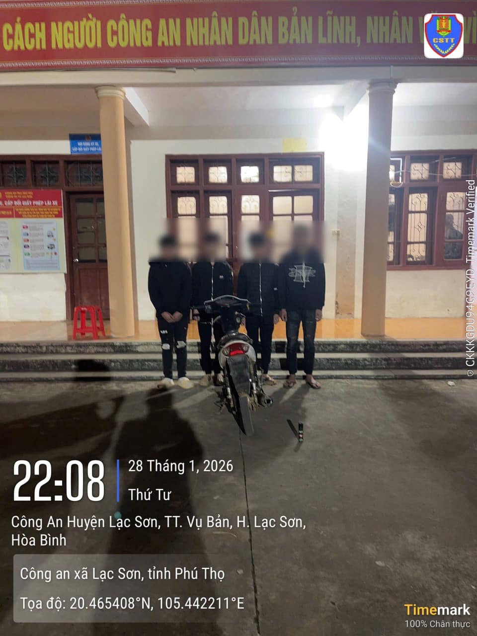 Vào khoảng 22h00’ ngày 28/01/2026, Tổ công tác Công an xã Lạc Sơn làm nhiệm vụ tuần tra, kiểm soát trên địa bàn phát hiện nhóm thiếu niên điều khiển xe mô tô chở quá số người quy định.
