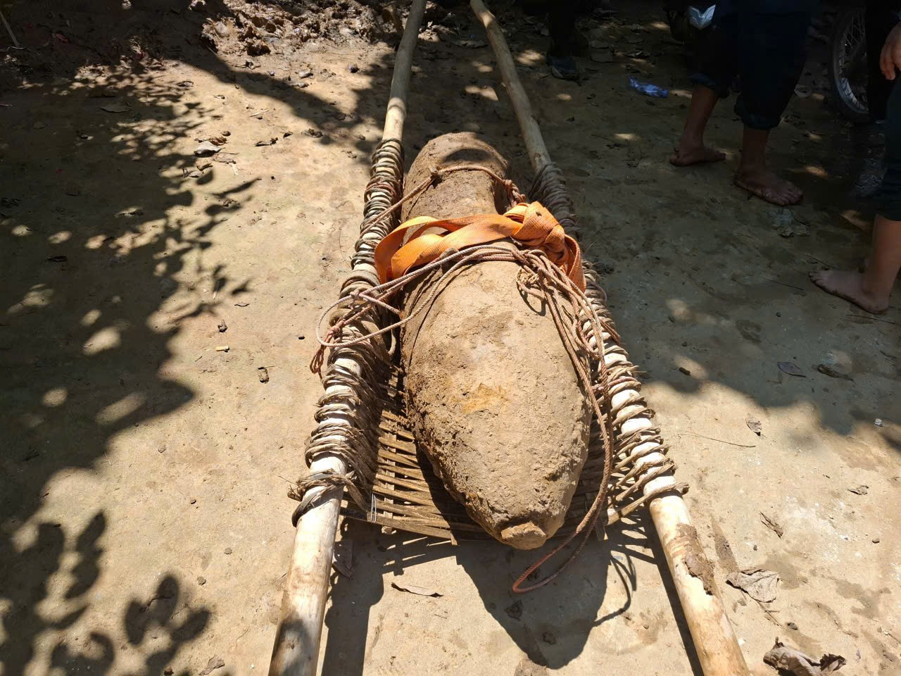 Qua xác minh, đây là loại bom Mỹ thả trong chiến tranh đánh phá miền Bắc vào những năm 1968 – 1970, vỏ còn nguyên, đường kính 0,4m, chiều dài 1,2m, trọng lượng 340kg không chủng loại, là loại bom nổ phá. Quả bom nằm sâu dưới đất khoảng 45cm.