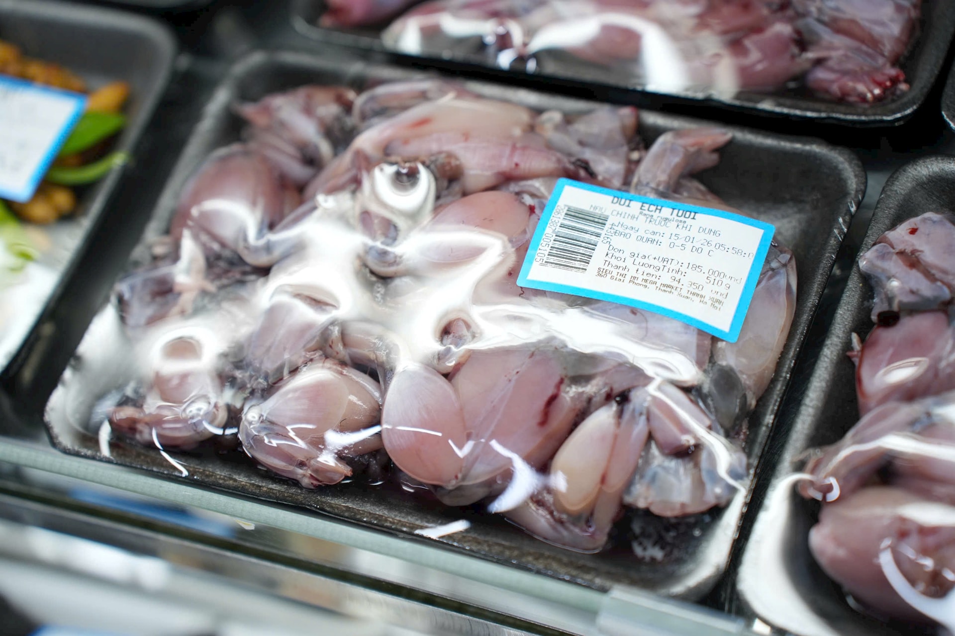 Tại khu vực quầy kệ bán hàng, đoàn kiểm tra ghi nhận tem nhãn của 24 khay má đùi gà, 16 khay cá hồi, 6 khay cồi ốc bươu, 19 khay đùi ếch tươi và thân trước ếch chỉ thể hiện ngày cân (ngày đóng gói tại siêu thị) mà không thể hiện ngày sản xuất của sản phẩm. Việc thiếu thông tin về ngày sản xuất khiến người tiêu dùng không thể xác định được chính xác độ tươi ngon cũng như hạn sử dụng thực tế của thực phẩm, gây hoang mang cho khách hàng mua sắm dịp cận Tết.