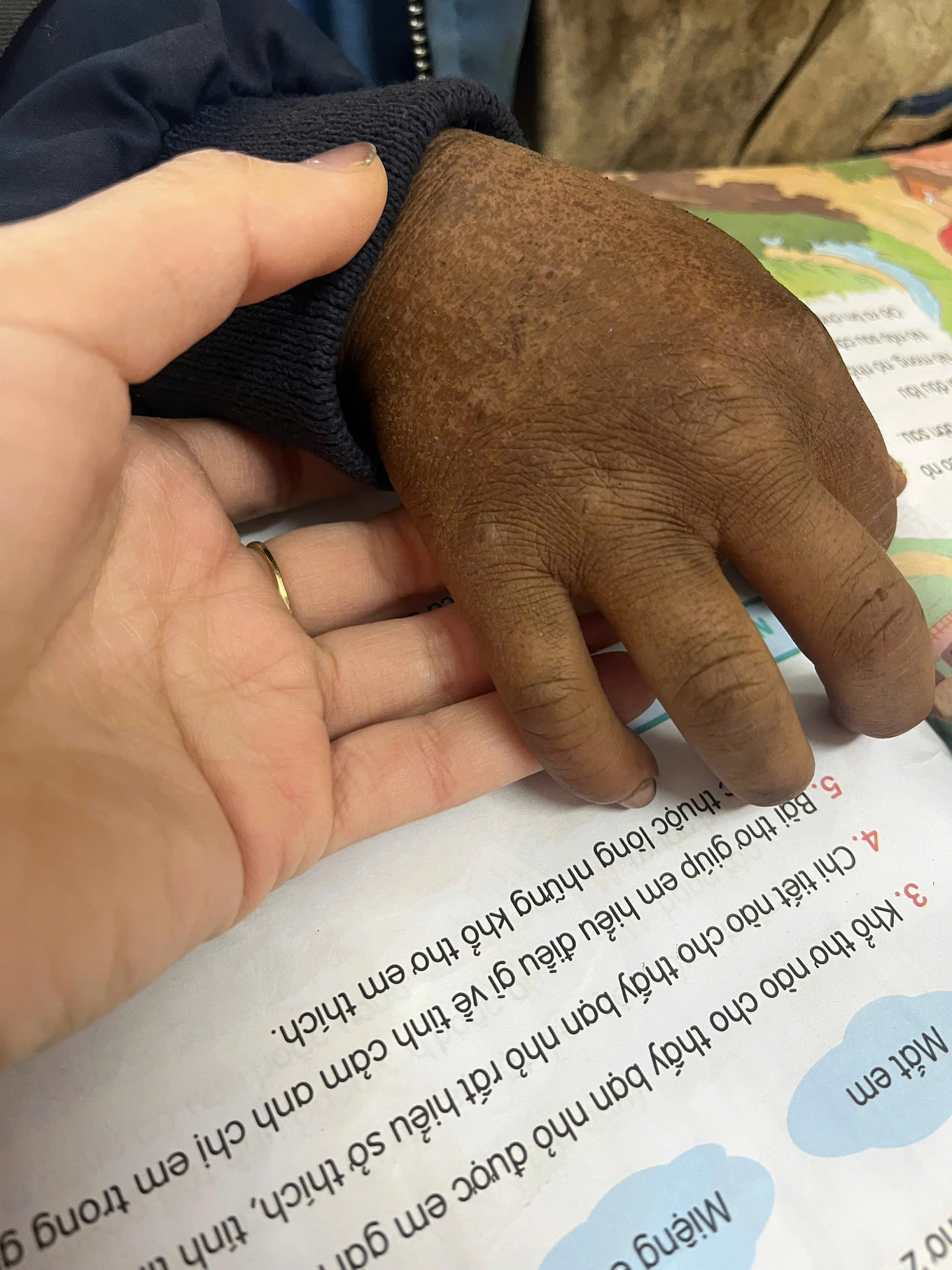 Hình ảnh bàn tay của A Dao khiến nhiều người xúc động (Ảnh: NVCC).