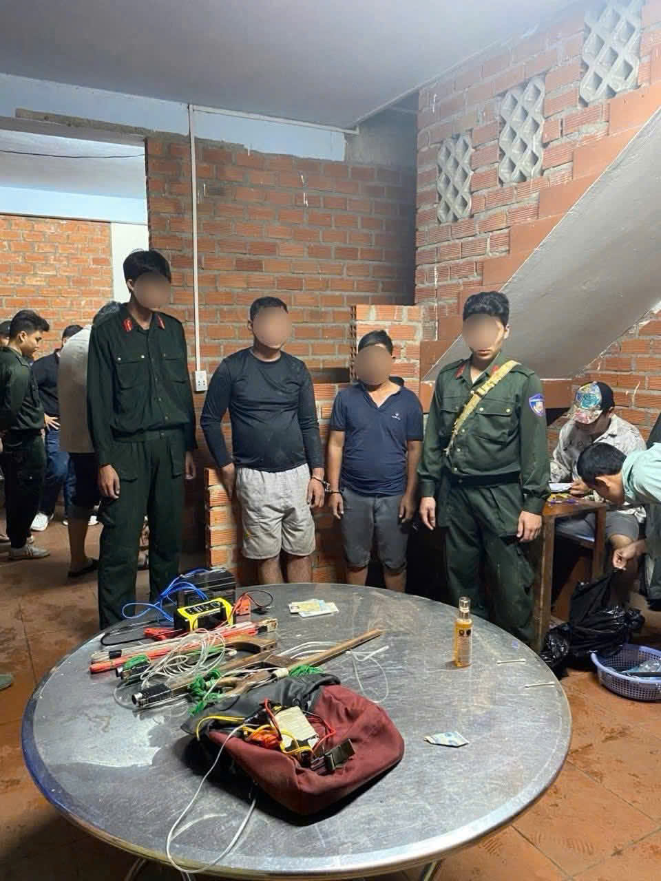 • Tang vật: 01 ô tô, 04 xe máy và kho “hàng nóng” (súng điện, bình xịt hơi cay, mũi tên tự chế, máy làm lông).