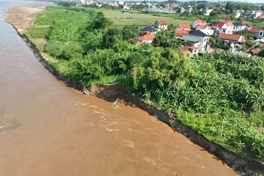 Đáng chú ý, tại khu dân cư số 12 (Hương Nộn cũ), từ ngày 30/8 đến nay dòng chảy thay đổi đã cuốn mất khoảng 1ha đất bãi và làm sạt hơn 500m bờ sông, trong đó có gần 200m đất ở của người dân bị ảnh hưởng trực tiếp.
