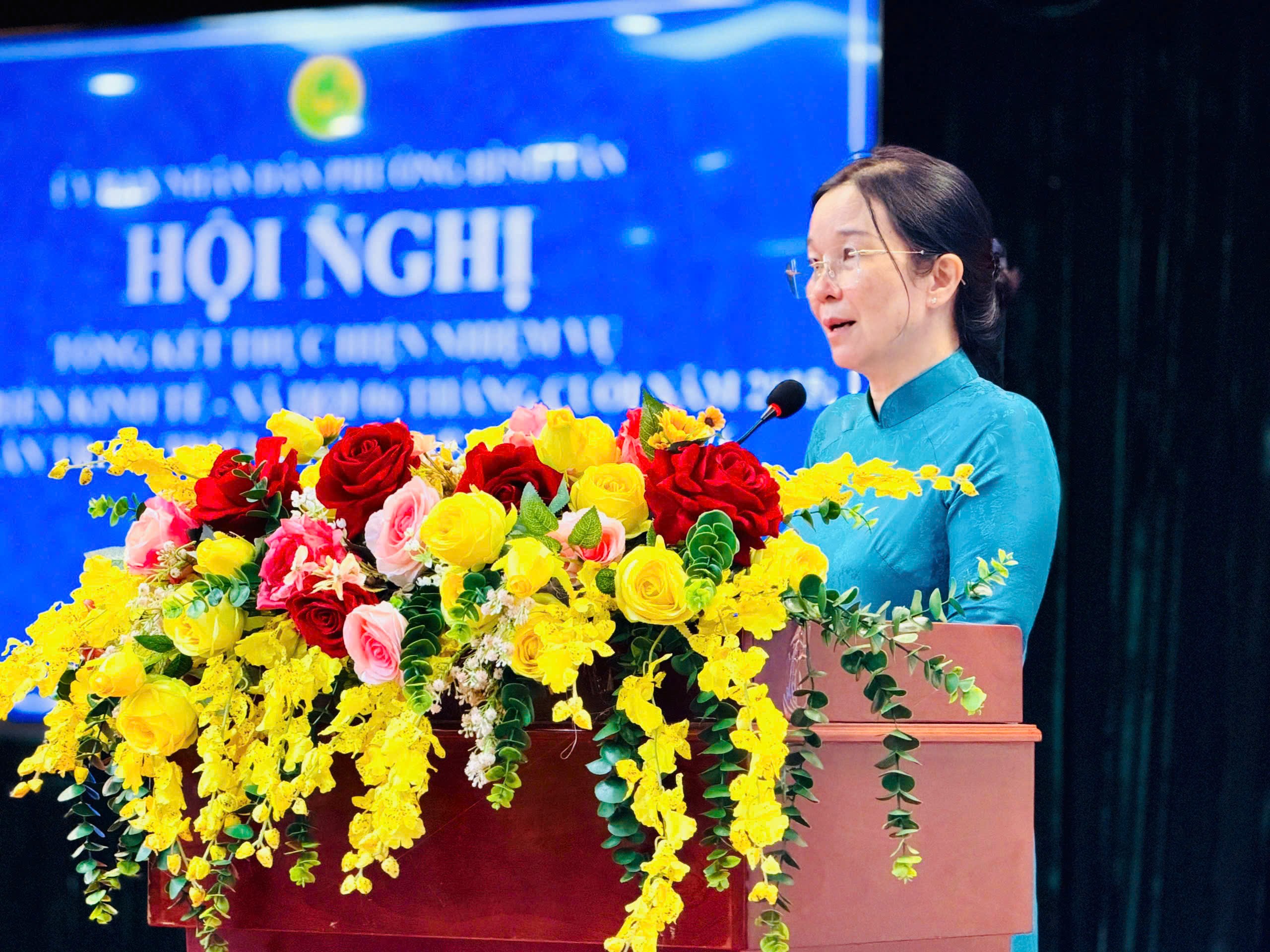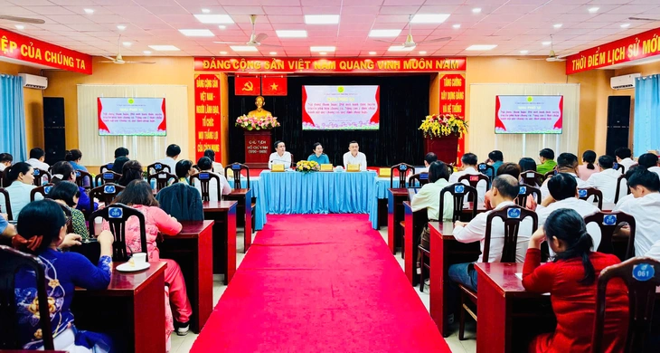 Bà Phạm Thị Ngọc Diệu – Bí thư Đảng ủy phường Bình Tân – phát biểu tại hội nghị – Ảnh do UBND phường Bình Tân cung cấp
