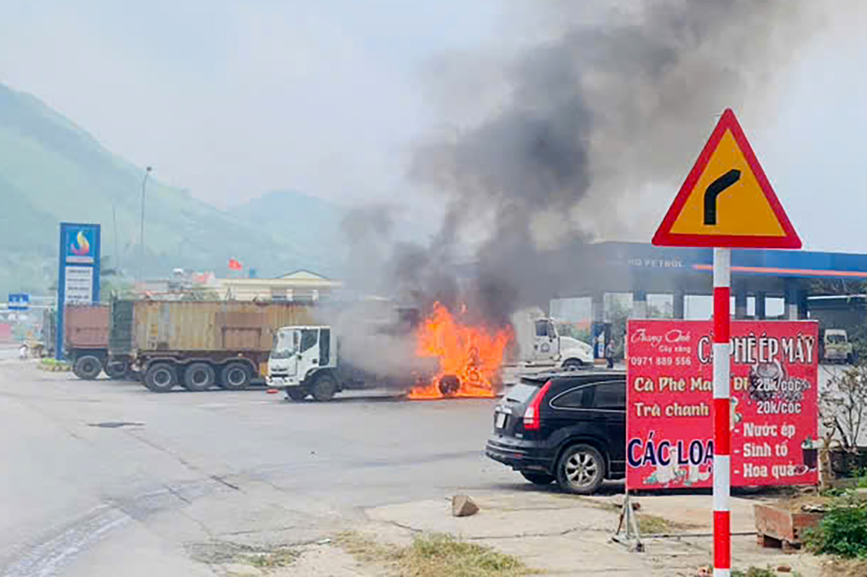 Ngay sau đó, tài xế điều khiển xe vào khuôn viên trạm xăng dầu Đại Yên để nhờ hỗ trợ dập lửa; thời điểm này, xe đang chở chất CRH1 (tạp chất làm đường).