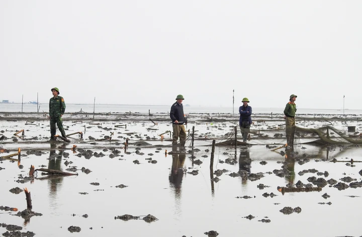 Tận dụng khoảng thời gian thủy triều xuống, lực lượng chức năng ra quân xử lý được gần 1.000ha bãi nuôi nhuyễn thể trái phép.