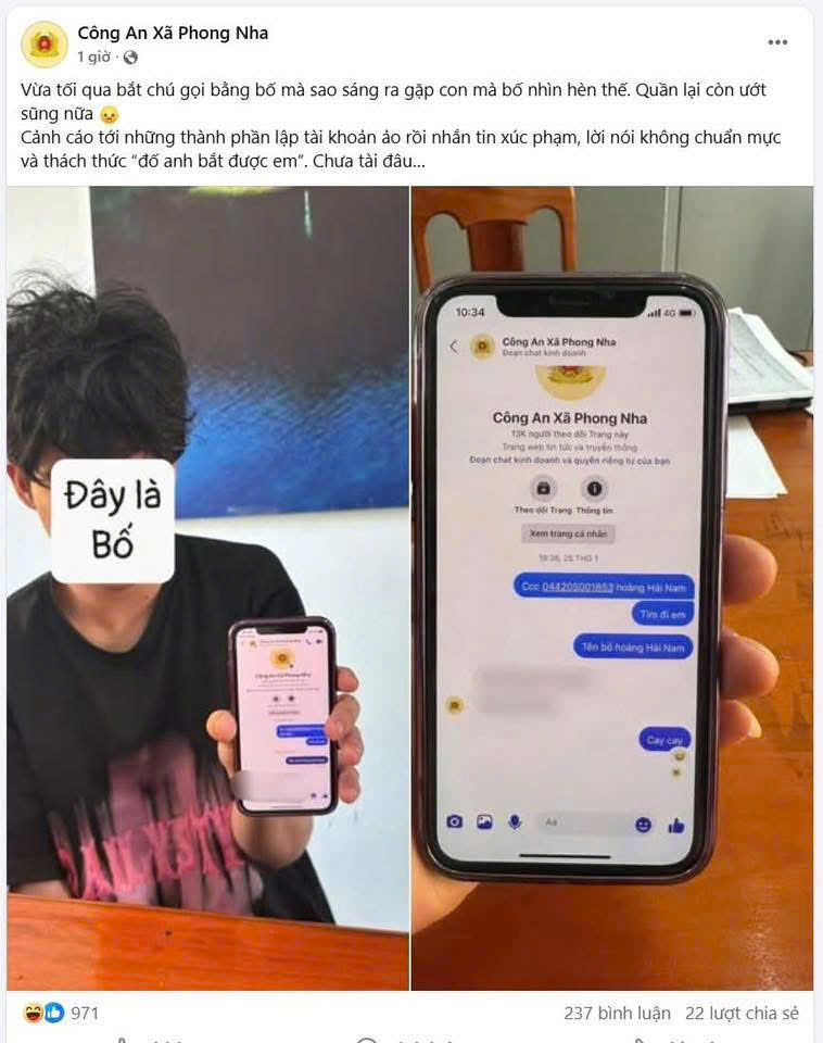Quảng Trị: Thanh niên lập facebook giả nhắn tin xưng bố với Công an Xã và thách thức: Tìm bố đi