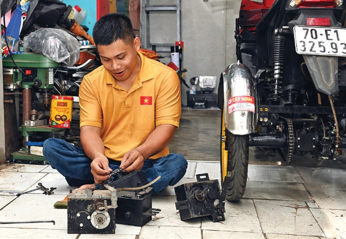 Tốt nghiệp THPT, anh Hùng thi vào Trường Cao đẳng Công nghệ thông tin TP.Hồ Chí Minh. Nhận thấy xung quanh có nhiều NKT cần phương tiện đi lại, anh học thêm nghề sửa xe ba bánh. Trở về xã Tân Phú, anh mở tiệm sửa xe gắn máy tại nhà, chủ yếu cải tiến xe hai bánh thành ba bánh để đáp ứng nhu cầu của người già, NKT. Còn vợ anh làm công nhân trong khu công nghiệp trên địa bàn tỉnh.