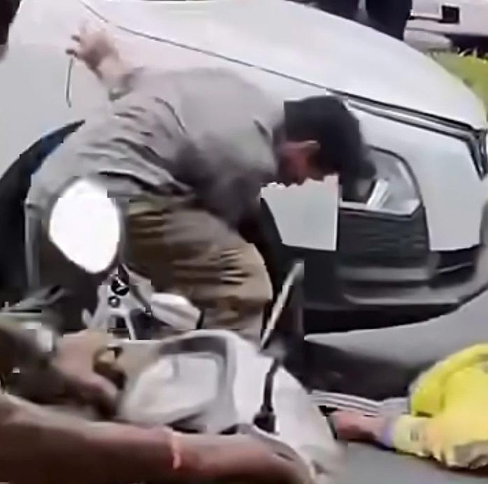 Lúc chờ đợi, một ô tô màu trắng đã chạy đến tông suýt cán qua người tài xế. Phát hiện vụ việc, người dân hô hoán yêu cầu tài xế ô tô dừng lại. Nam tài xế sau đó được đưa đến bệnh viện cấp cứu.