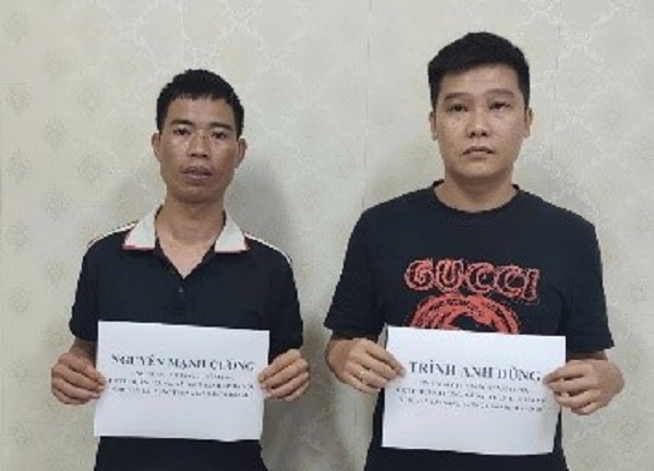 Đối tượng Trình Anh Dũng (bên phải) và đối tượng Nguyễn Mạnh Cường (bên trái)