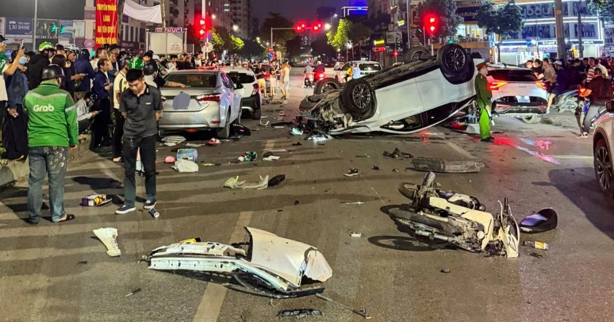 Sau va chạm, ô tô 30K-201.xx tiếp tục lao về phía trước, đi sang phần đường ngược chiều và va chạm với 4 ô tô cùng một xe máy do anh C.T.H. (34 tuổi, trú tại phường Đông Ngạc, Hà Nội) điều khiển.