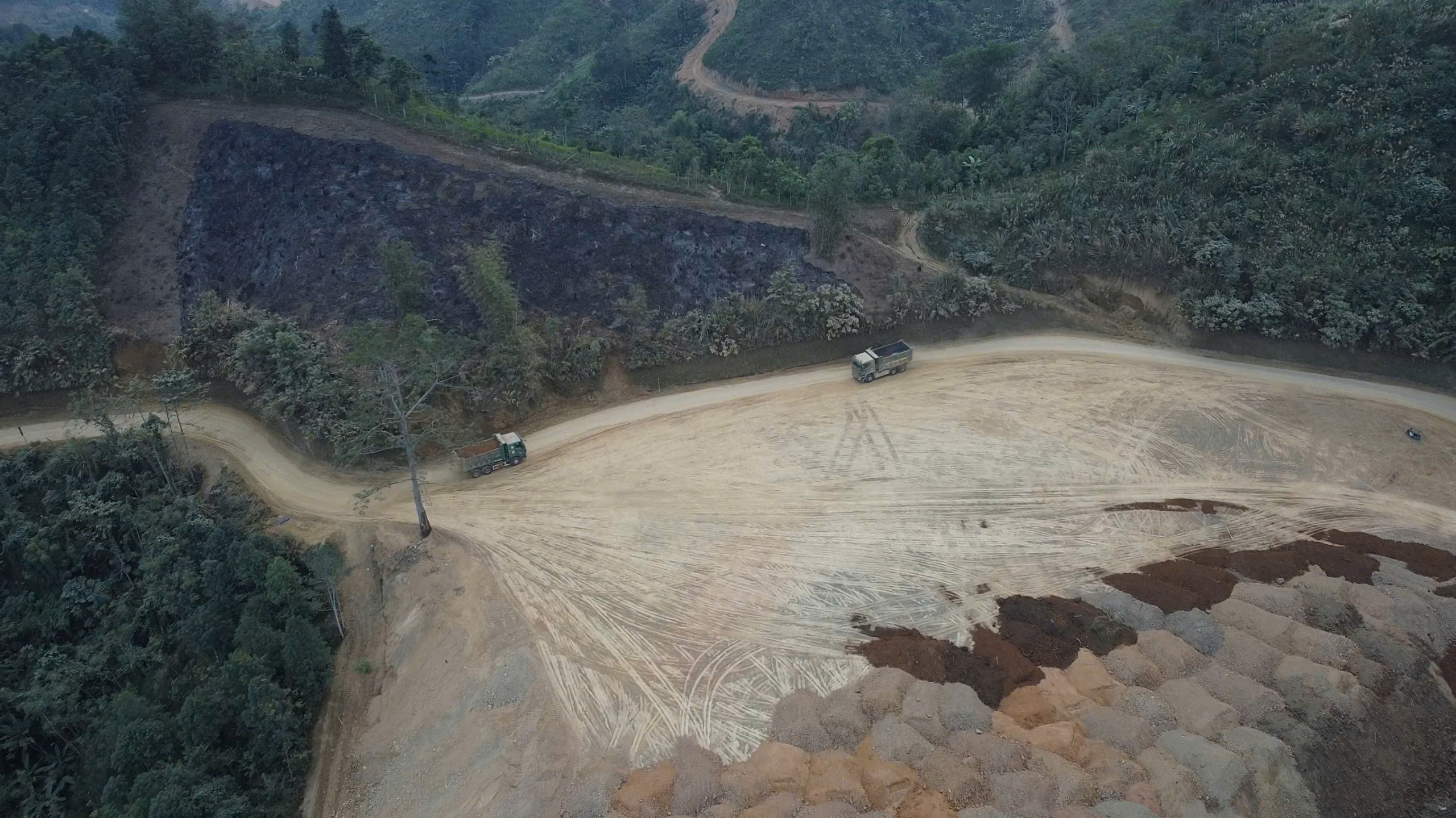 Khu vực gần nghĩa trang Phúc Thọ Viên, phường Bắc Kạn xuất hiện nhiều điểm đổ thải với khối lượng đất lớn, xe tải ra vào thường xuyên nhưng chưa được che chắn, giảm bụi hiệu quả.