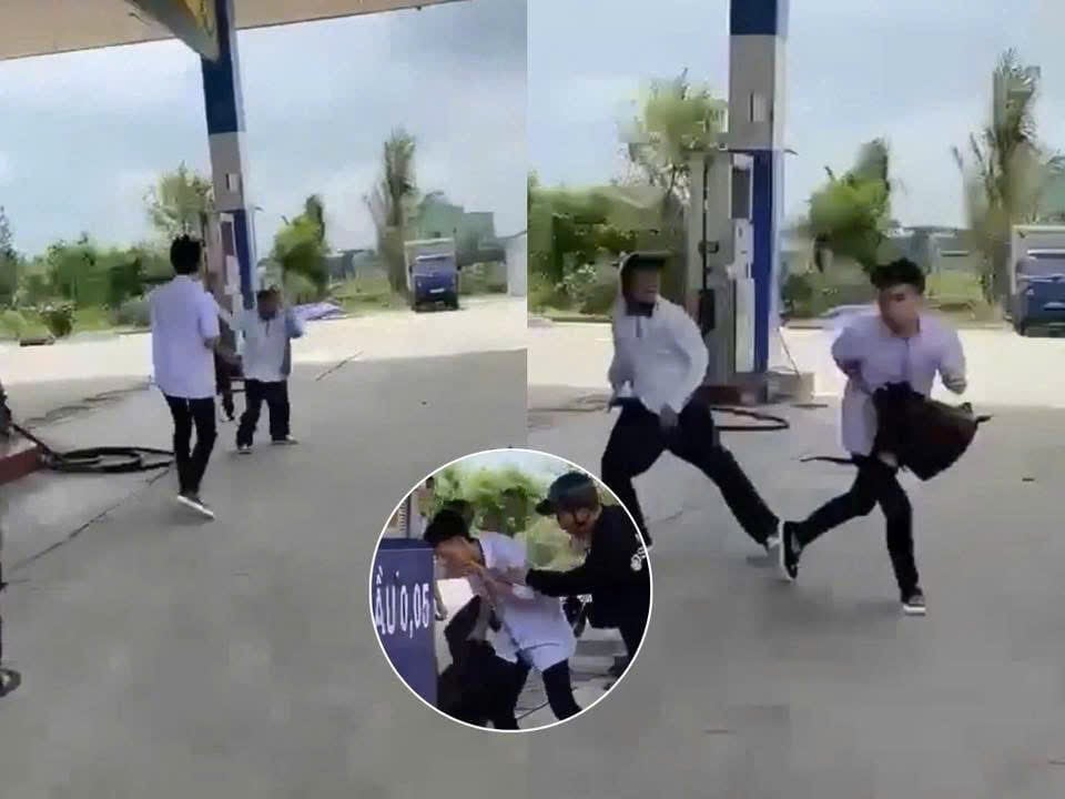 Hình ảnh vụ ẩu đả trước khi xảy ra án mạng gần Trường THPT Đặng Thai Mai. Ảnh: Cắt ra từ clip