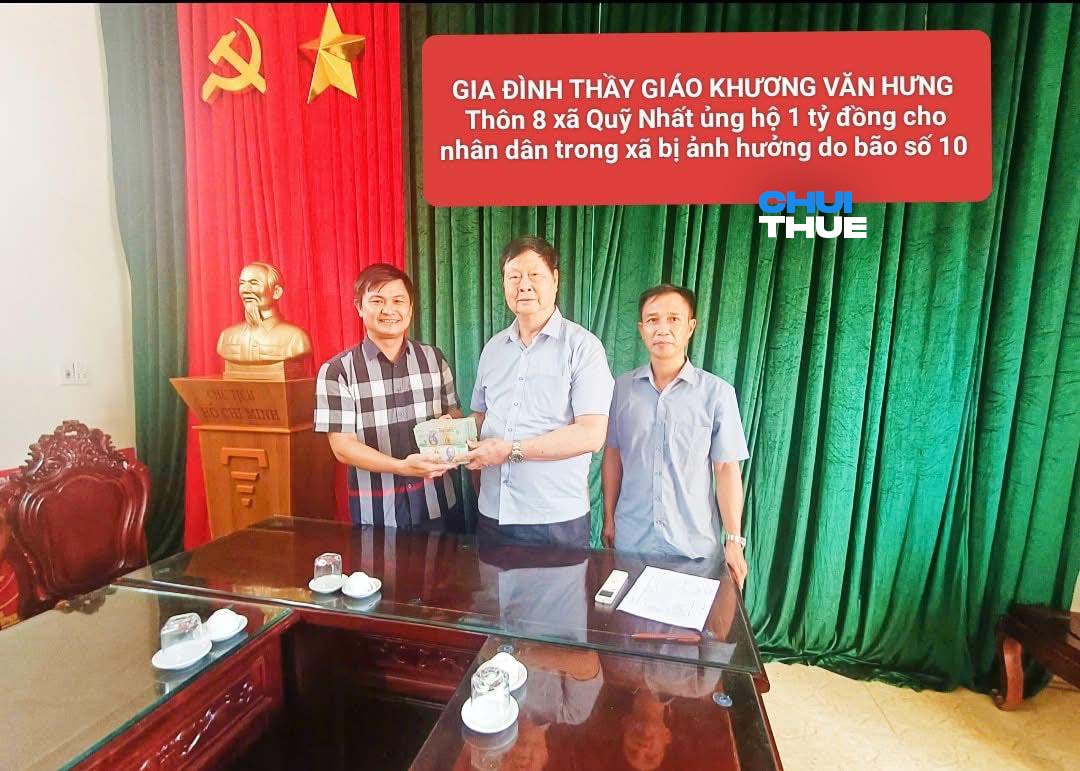 Với tinh thần “Tương thân, tương ái”, chung tay cùng cấp ủy, chính quyền và nhân dân khắc phục hậu quả do cơn bão số 10 gây ra, gia đình thầy giáo Khương Văn Hưng -thôn 8- xã Quỹ Nhất đã có những phần quà trị giá 1 tỷ đồng, đây là sự ủng hộ thiết thực và kịp thời đối với nhân dân xã Quỹ Nhất bị ảnh hưởng do bão và lốc xoáy gây ra.