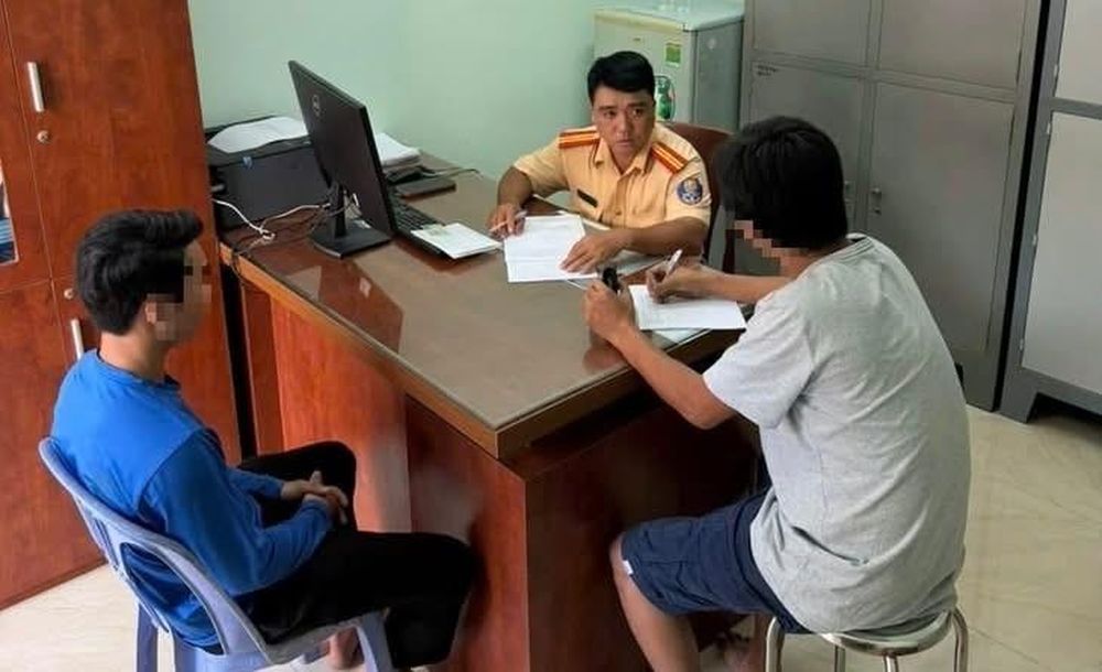 Công an làm việc với hai tài xế.