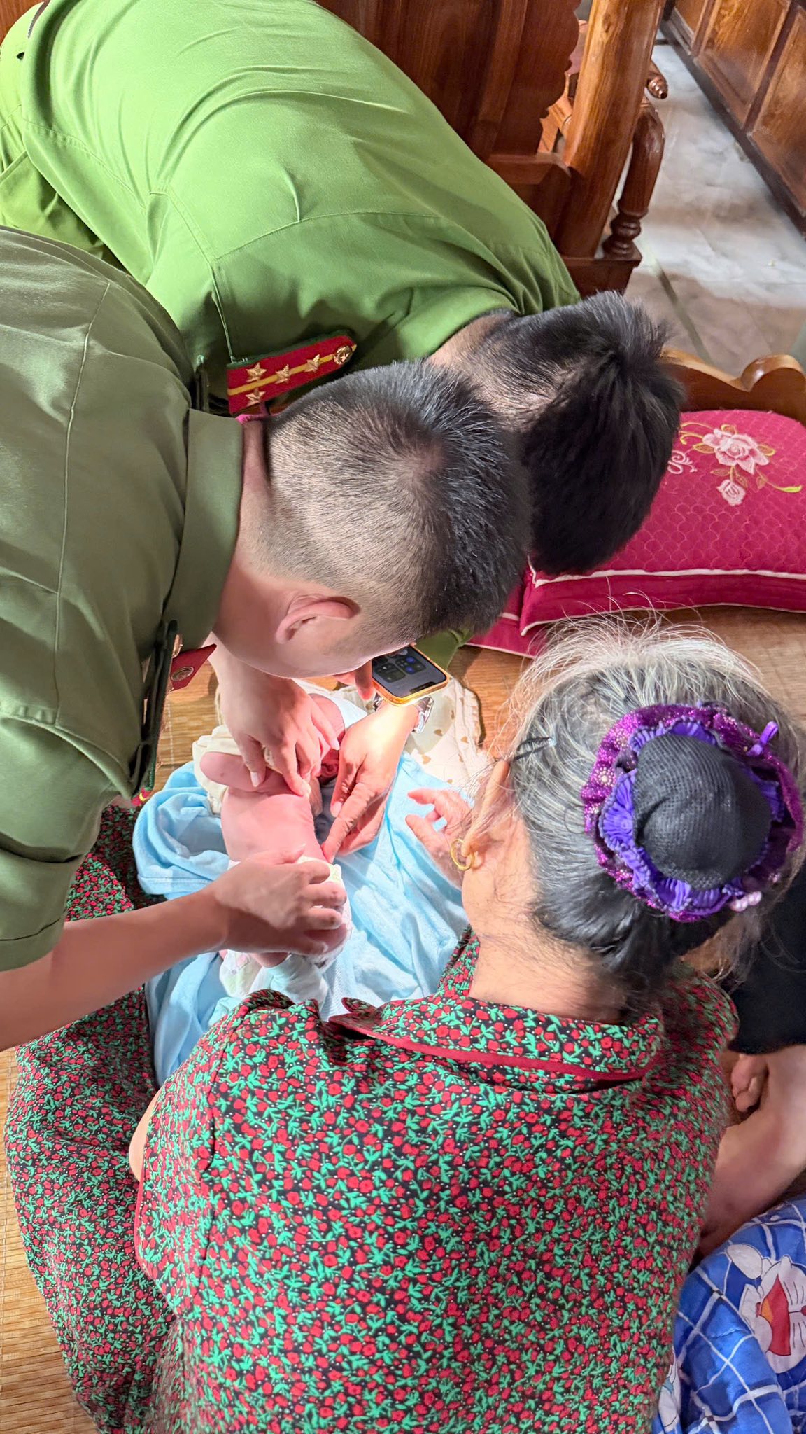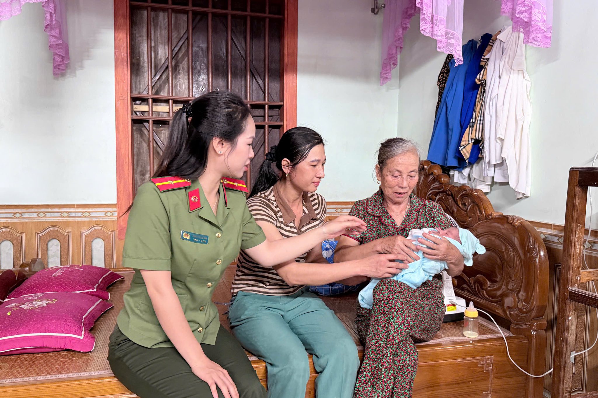 Ngay sau khi tiếp nhận, lực lượng Công an xã đã nhanh chóng có mặt tại hiện trường, phối hợp cùng y tế xã kiểm tra sức khỏe ban đầu cho cháu bé. Hiện tại, tình hình sức khỏe của cháu ổn định, đã đưa cháu đi tiêm phòng tại phòng tiêm trên địa bàn để đảm bảo sức khoẻ.
