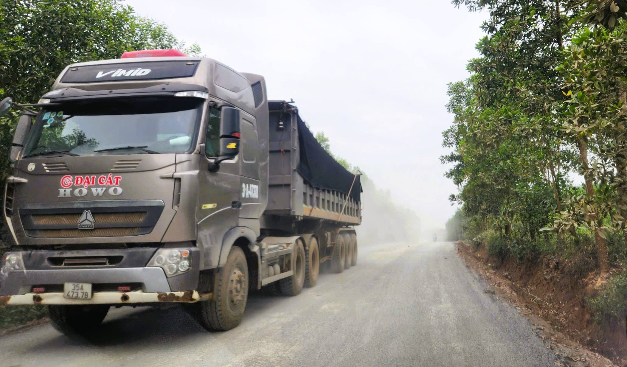 Do đường tỉnh lộ bé, trong khi xe tải lớn khiến cả tuyến đường chìm trong bụi mỗi lần đoàn xe đi qua, kèm theo đó là tiếng ồn lớn do xe tải chạy qua.