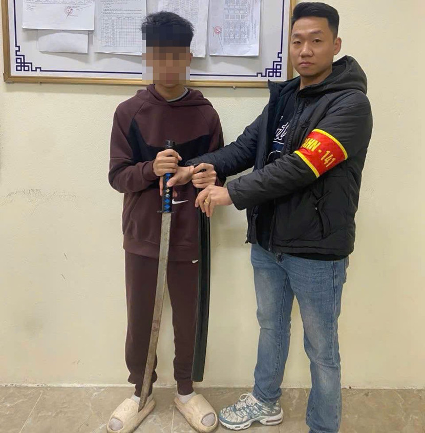 Trong quá trình làm nhiệm vụ, Tổ công tác Y24-141/CATP Hà Nội đã bắt giữ nam thiếu niên 17 tuổi cầm theo 1 thanh kiếm nhọn đi dọc tuyến đường Tiền Phong, xã Dương Hòa (Hà Nội).