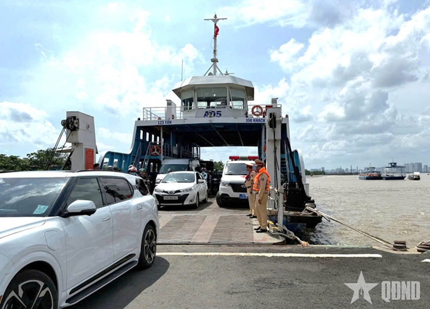 Công an TP Hồ Chí Minh điều tiết giao thông tại tuyến phà đi Cần Giờ.