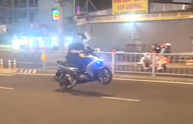 Đội CSGT Hàng Xanh đã lập biên bản vi phạm hành chính đối với hành vi “Điều khiển xe chạy bằng một bánh đối với xe hai bánh”, “Không có giấy phép lái xe”, tịch thu xe và phạt tiền 7 triệu đồng đối với người vi phạm.