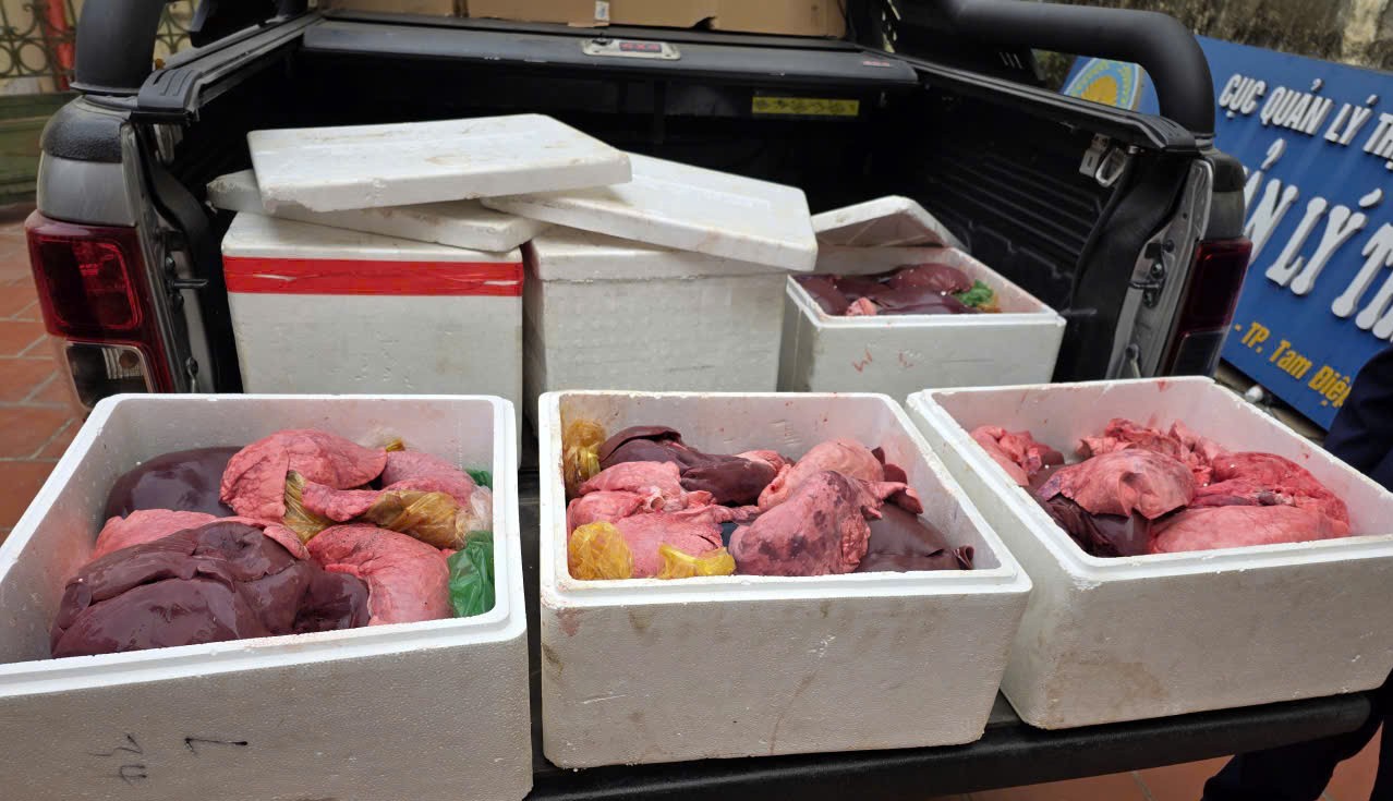 Quá trình kiểm tra, Tổ công tác phát hiện trên xe ô tô có khoảng 100 kg nội tạng lợn các loại, Lương Xuân Mạnh khai đang đi giao cho khách hàng ở phường Tam Điệp. Anh Mạnh không xuất trình được hóa đơn, chứng từ chứng minh nguồn gốc, xuất xứ số hàng hóa trên.