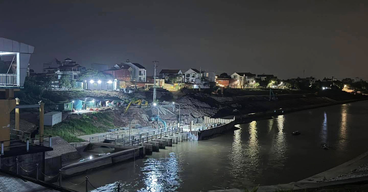 Lực lượng chức năng xuyên đêm tổ chức tìm kiếm tung tích của 3 mẹ con nghi gieo mình xuống sông Hồng tại khu vực cống Xuân Quan.