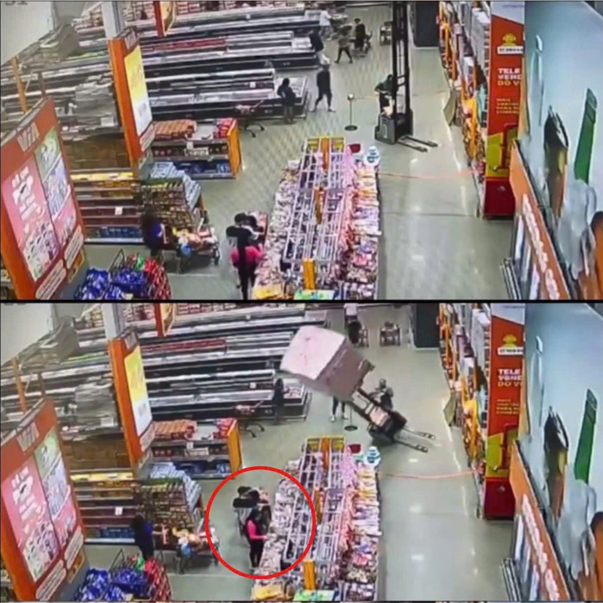 khách hàng đã vội vàng chạy đến giúp đỡ . Mọi người đã kịp thời gỡ những thùng hàng ra khỏi người phụ nữ đang bất tỉnh, nhưng sau đó bà tỉnh lại và than đau.