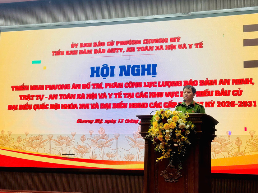 Ngày 13/3, Tiểu ban bảo đảm an ninh, trật tự và y tế phường Chương Mỹ, Hà Nội đã tổ chức hội nghị triển khai phương án bố trí, phân công lực lượng bảo đảm an ninh, an toàn các khu vực bỏ phiếu phục vụ cuộc bầu cử đại biểu Quốc hội khóa XVI và đại biểu HĐND các cấp, nhiệm kỳ 2026 – 2031 trên địa bàn.