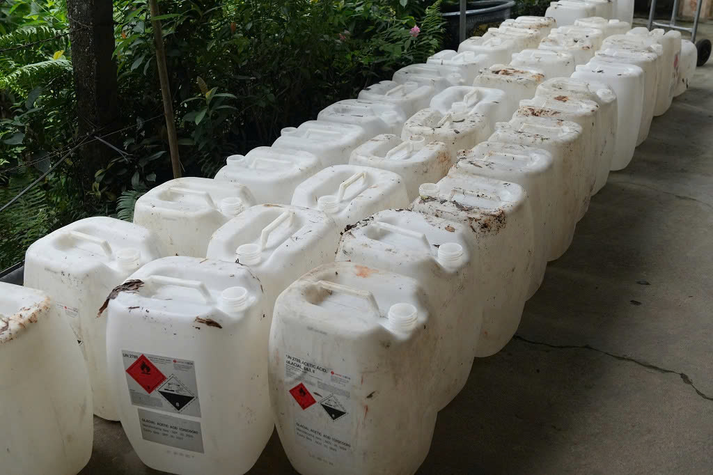 Can chứa axit acetic công nghiệp mà Lê Thị Lộc mua về để pha chế, sản xuất giấm giả.