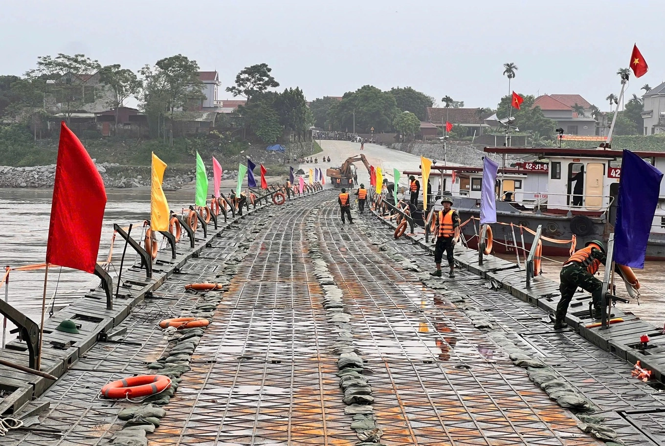 Chiều 15/2, Lữ đoàn 249 – Binh chủng Công binh (Bộ Quốc phòng) tiến hành lắp đặt cầu phao qua sông Lô, phục vụ nhu cầu đi lại của người dân. Thời gian lắp đặt khoảng 2 giờ.