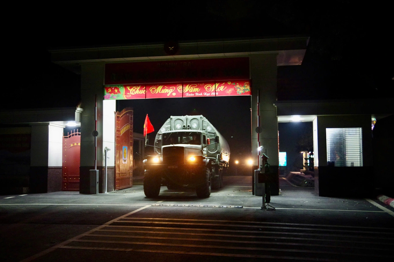 Các cán bộ, chiến sĩ Lữ đoàn 249 lên đường thực hiện nhiệm vụ lắp đặt, bắc cầu phao sông Lô (Ảnh: Đăng Chiến).
