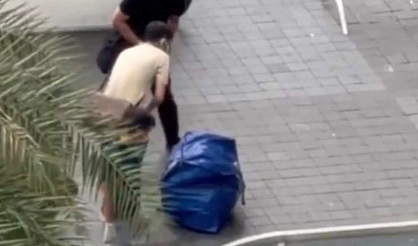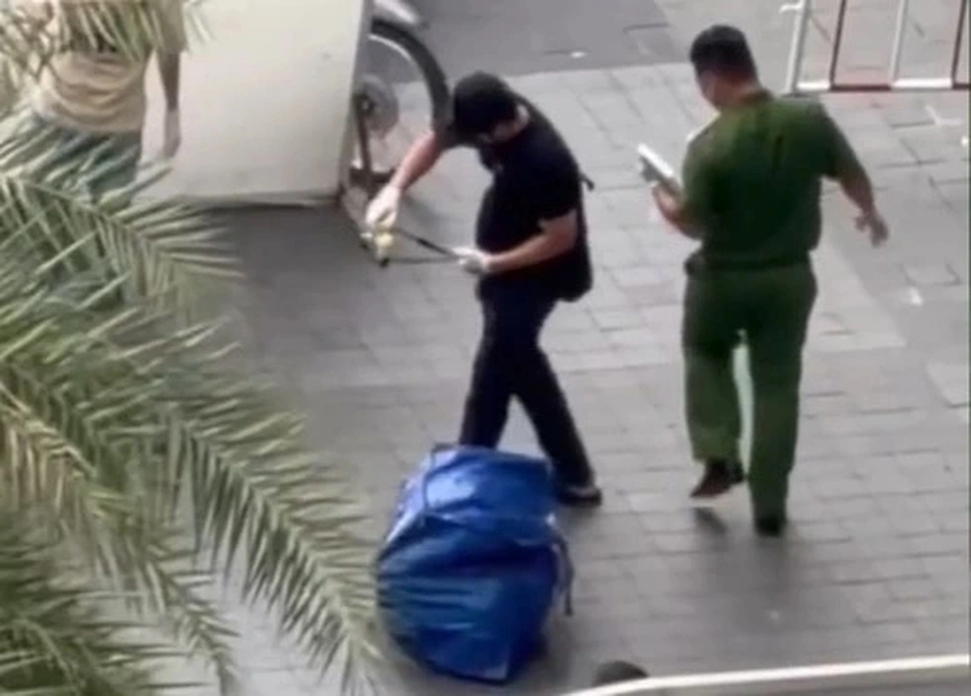 Người dân phát hiện 2 người đàn ông kéo chiếc túi màu xanh chứa thi thể trong khu đô thị tại phường Thạnh Mỹ Tây, TPHCM. Cảnh sát đang phong tỏa hiện trường, truy bắt 2 nghi phạm.