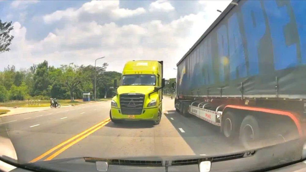 Thời điểm xảy ra vụ việc, các phương tiện lưu thông đúng làn phải dừng lại, chờ xe đầu kéo quay về phần đường của mình. Toàn bộ diễn biến được camera hành trình của một phương tiện ghi lại.