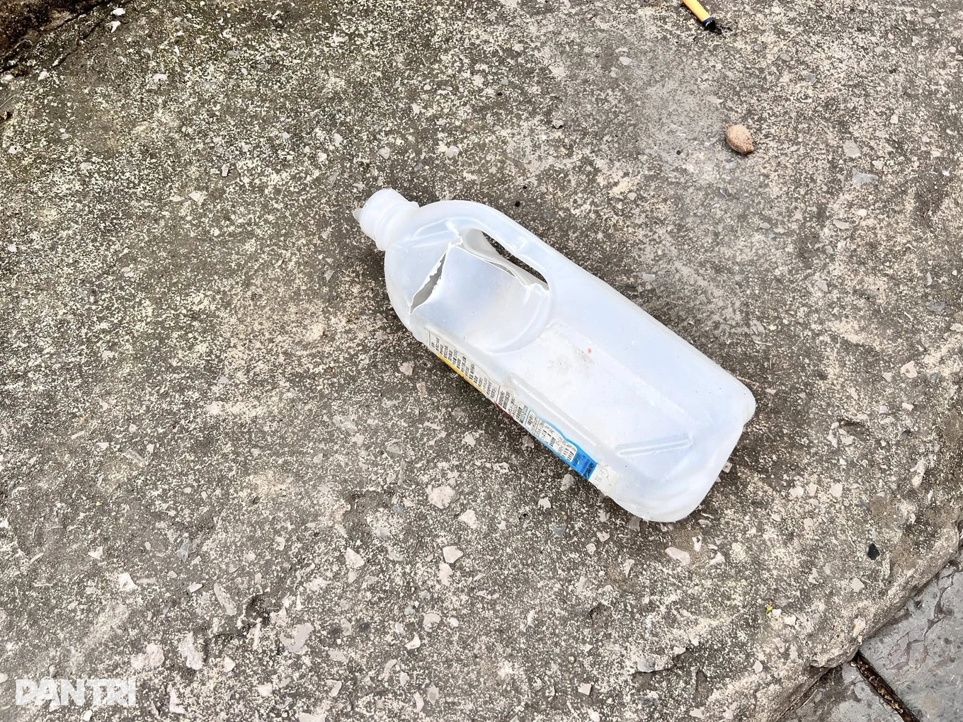 Anh Thiện lập tức chạy xuống sân, phát hiện một chai nước bằng nhựa nằm cách ô tô vài mét, nước vương vãi ra xung quanh. Kính lái trên ô tô của tôi bị rạn vỡ.
