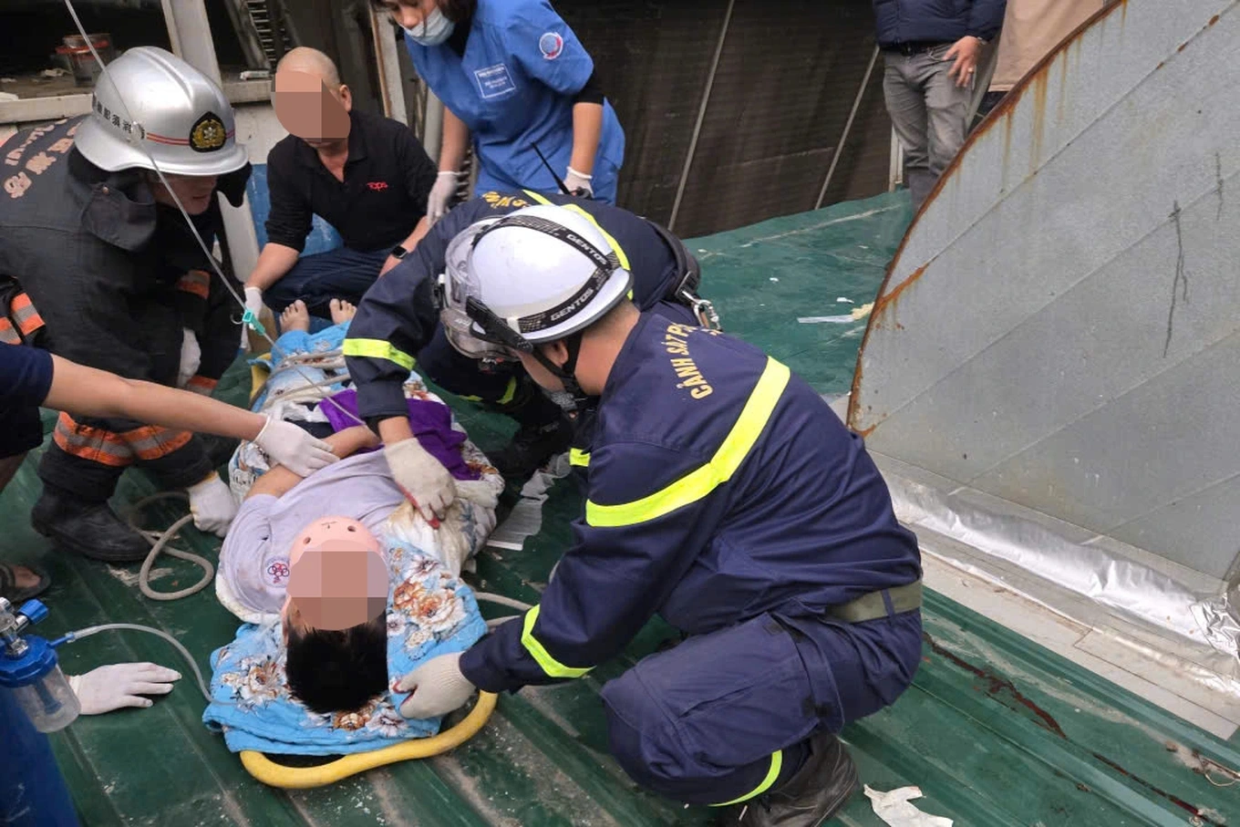 Lực lượng cảnh sát PCCC sau đó đã tiếp cận, phối hợp với lực lượng y tế đưa nạn nhân lên cáng cứu thương, sơ cấp cứu, nẹp cố định các vị trí bị thương, đồng thời đưa nạn nhân từ mái siêu thị xuống vị trí an toàn bằng xe thang, bàn giao nạn nhân cho lực lượng y tế tiếp tục điều trị.