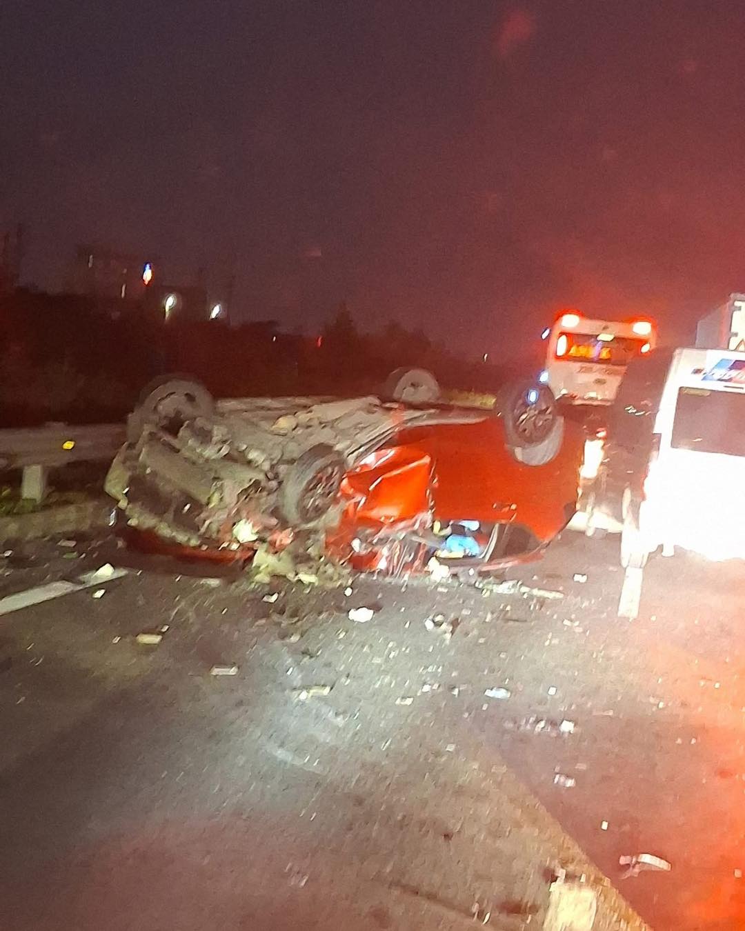 Theo cảnh sát, vụ tai nạn không gây thiệt hại về người; tài xế ô tô con đã tự chui ra khỏi xe sau khi xe đã lật úp và bị “vò nát”, kỳ diệu là hoàn toàn không bị thương. Tuy nhiên 2 phương tiện bị hư hỏng.