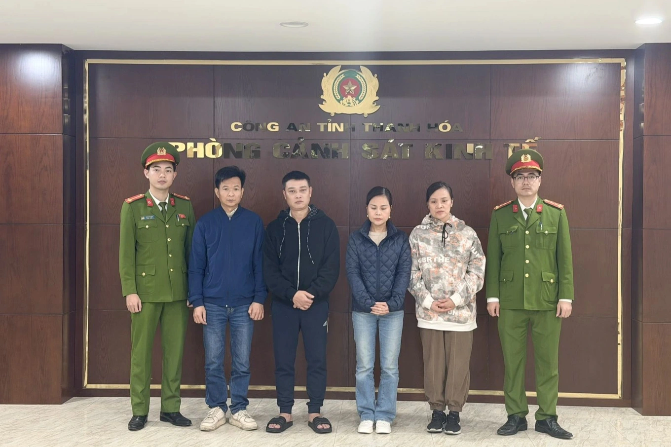 4 trong số 26 đối tượng bị bắt giữ (Ảnh: Công an Thanh Hóa).