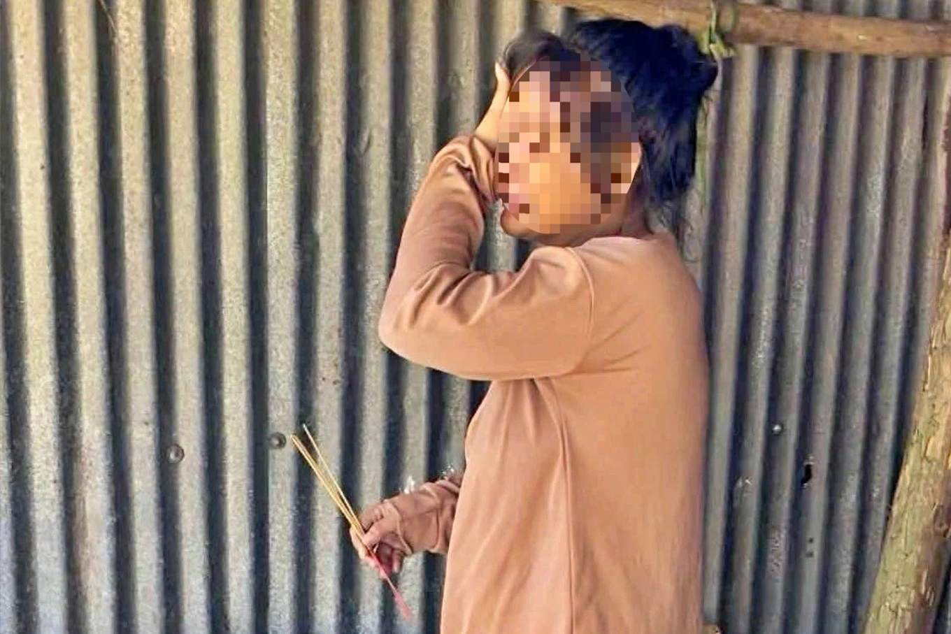 Căn chòi tạm ven kênh của gia đình, nơi xảy ra sự việc.