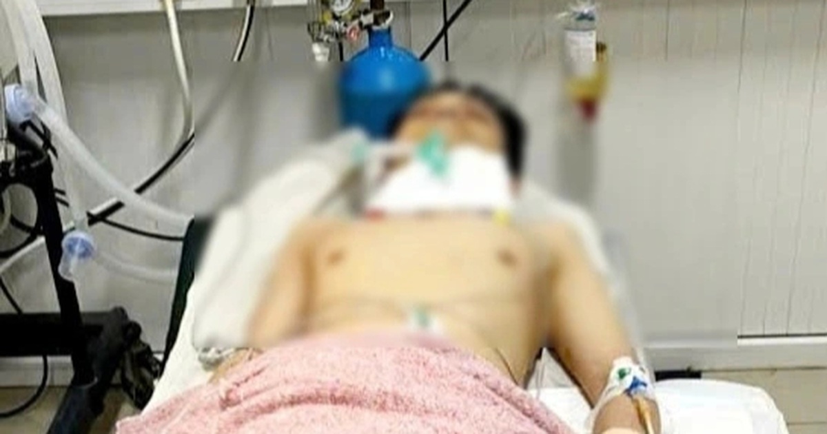 Thông tin từ bác sĩ, bệnh nhân nhập viện trong tình trạng phải thở máy; có vết thương vùng cổ trước dài khoảng 12cm, làm lộ khí quản. Bệnh nhân còn có vết thương ở cẳng tay trái, dài khoảng 6cm.